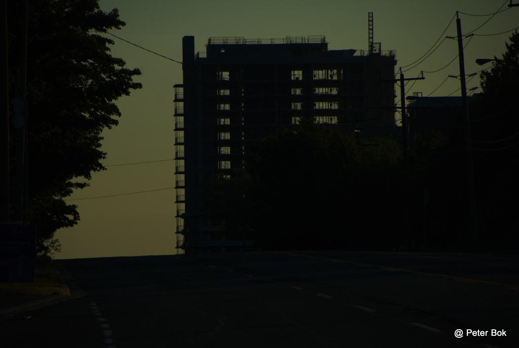| In darkness, there leaves a silhouette of a desolate building. Nikon D200, AF18-200mm f.3.5-5.6 @200mm f/5.6 1/640sec ISO200 在黑暗中,祇剩下大廈孤寂的剪影! |